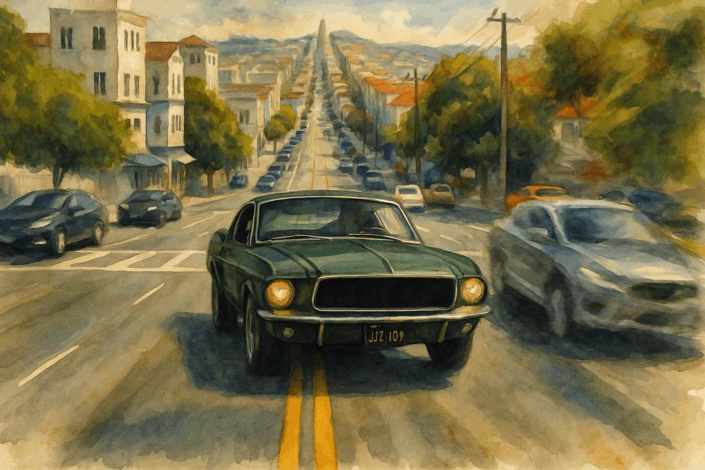 1968年に公開された映画『Bullitt ブリット』。スティーブ・マックイーンがフォード・マスタングを操り、サンフランシスコの街を疾走するカーチェイスは、映画史に残る名場面として語り継がれています。観客を熱狂させたのは、映像だけではありません。独特のエンジン音も重要な要素でした。
